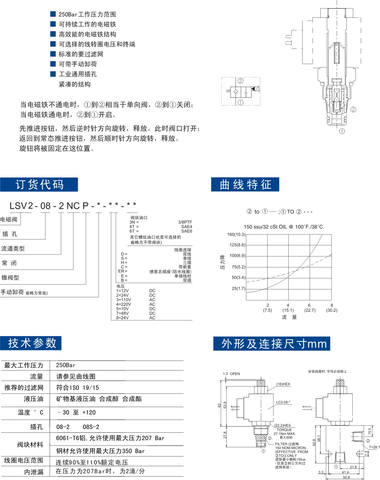 LSV2-08-2 NCP 二位二通电磁阀 常闭型