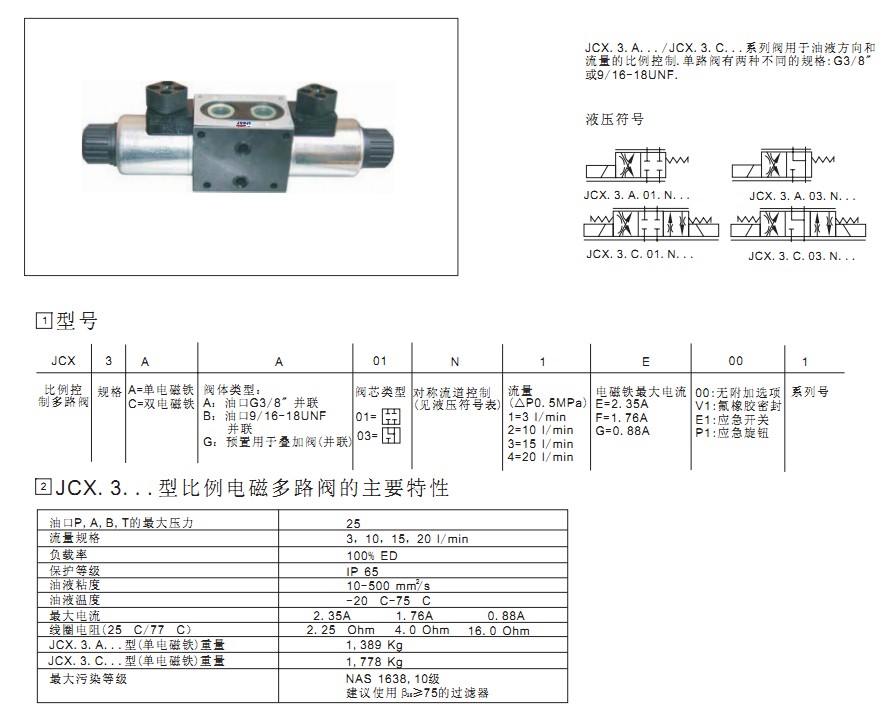 JCX.3.A.../JCX.3.C...比例电磁多路阀