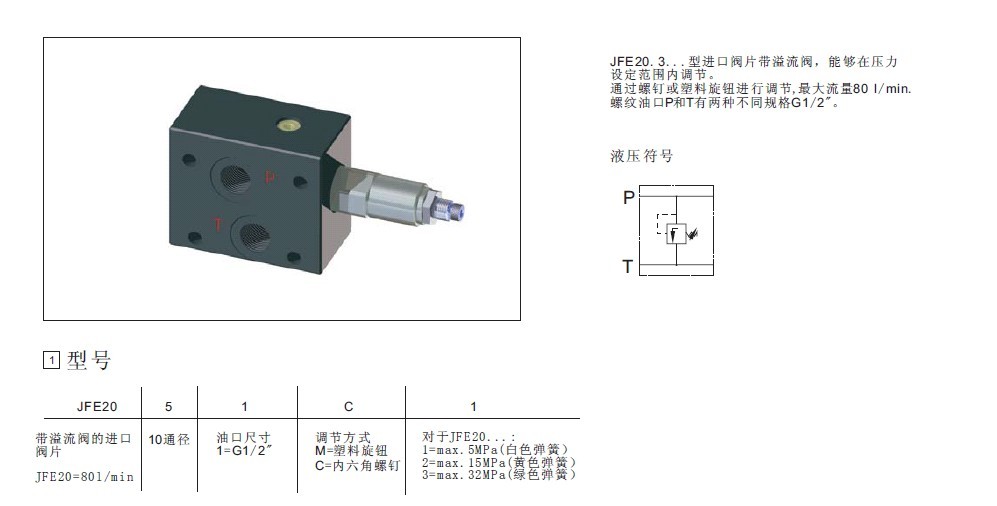 JFE20.3...带溢流阀的进口阀片