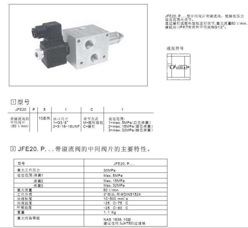 JFE20.3...带溢流阀的进口阀片
