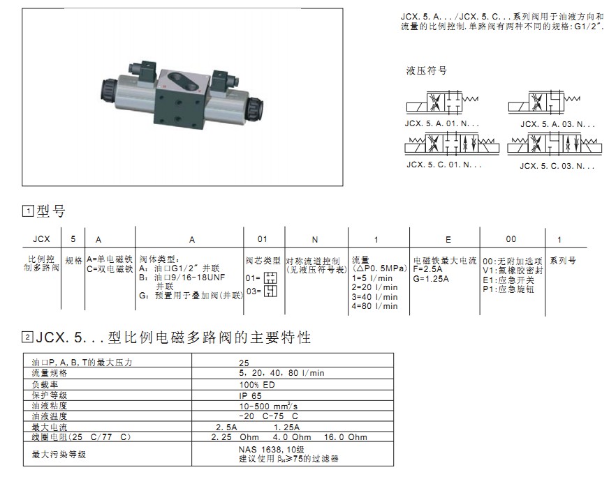 JCX.5.A.../JCX.5.C...比例电磁多路阀